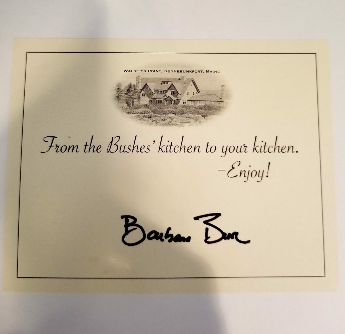 On our trip to Kennebunkport, Maine, we picked up The Bushes Family Cookbook by Ariel De Guzman. It was a nice treat for this book to be signed by recently passed Barbara Bush.