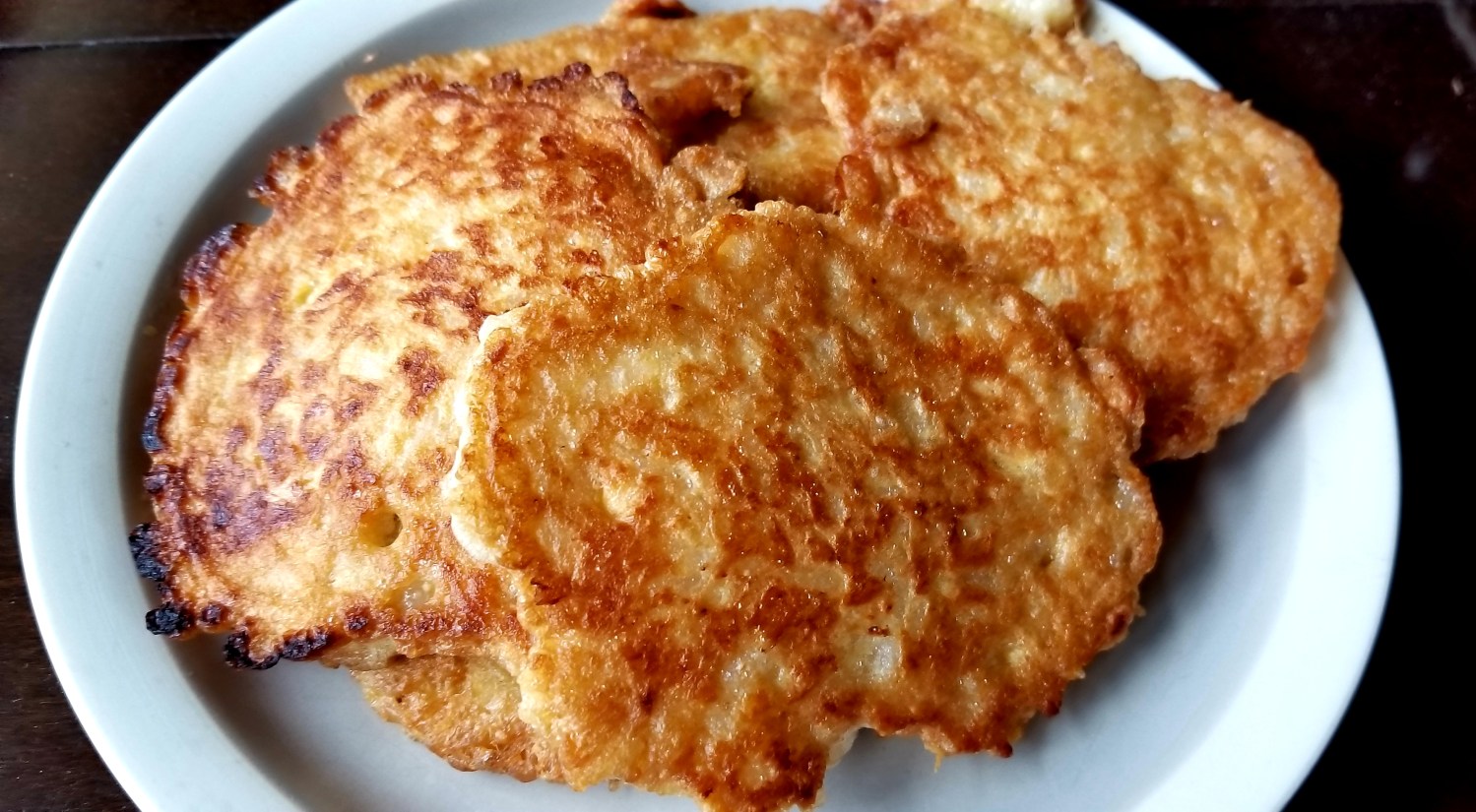- Using a ladle, pour small portions of batter onto the heated pan. Depending on the size of your frying pan, you may be able to fit a few patties during a single batch