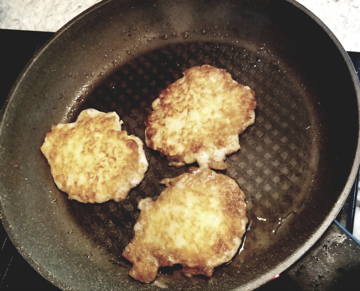 - Once you notice that the bottoms of each pattie turns golden brown and themiddle looks set, flip each pattie to fry the other side using a spatula.
